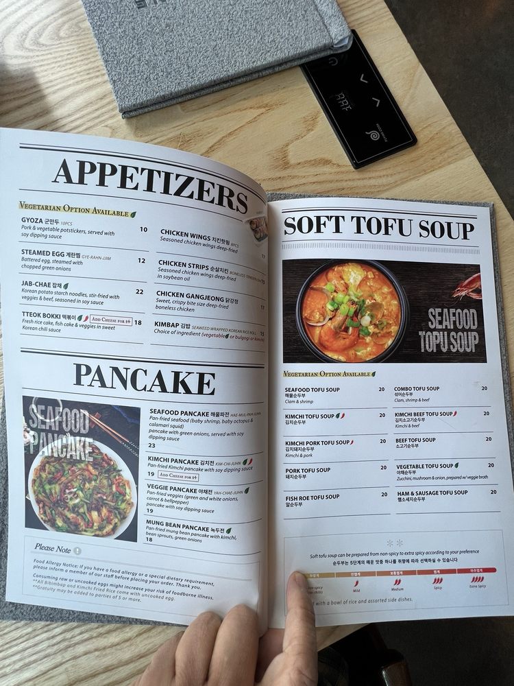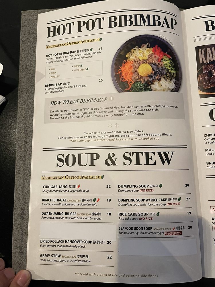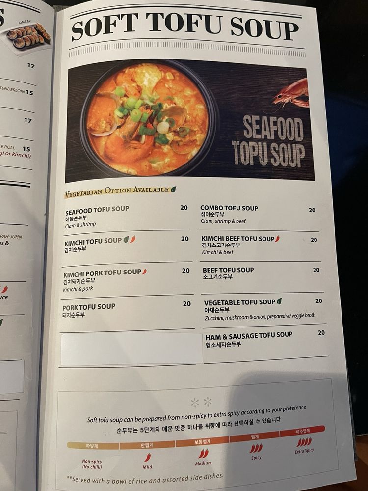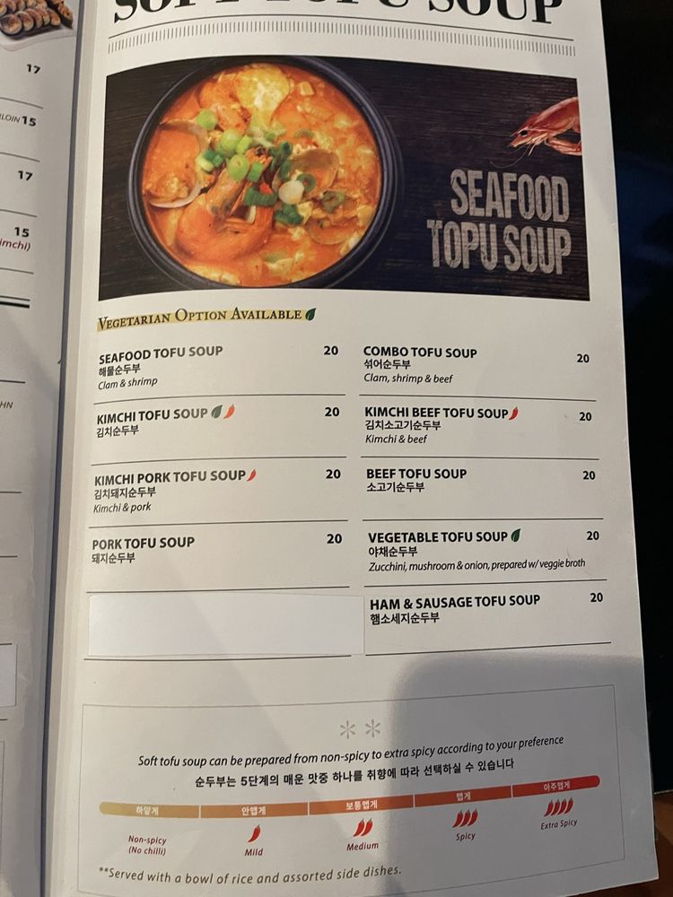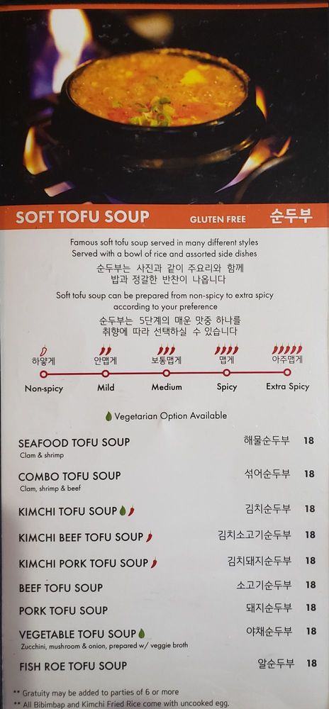 Spicy beef brisket and vegetable soup. Served with rice and side dishes. Medium spicy.